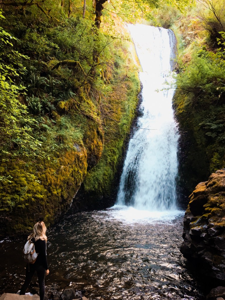 When you first see the waterfall, you’ll see a lookout point and that’s where most people stop walking. Don’t! It’s super easy to follow the rocks down and you’ll usually be by yourself down there near the water. It’s our favorite waterfall to this day in Oregon. & there are other waterfalls really close by that allows you to waterfall hop.