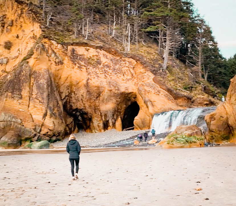 It’s along the 101 highway. It’s a tiny turnoff point so we actually just finally stopped there in 2021! But it had so much to give! There are a ton of great stops along our coast to see, but this one is a great place to go during sunset after already eating. There aren’t any food places located next to it but it has a waterfall that you can hike up to that’s adjacent to the beach itself. It’s also a great place to climb along some of the volcanic rocks on the beach and see some starfishes and anemones! It also is a easy walk to a strip of beautiful houses that face the ocean. Maybe it’s just us but we love to walk through neighborhoods to get a vibe of what the houses look like! Their houses look extra amazing during sunset because you’ll see the warm sun reflecting off of their windows.