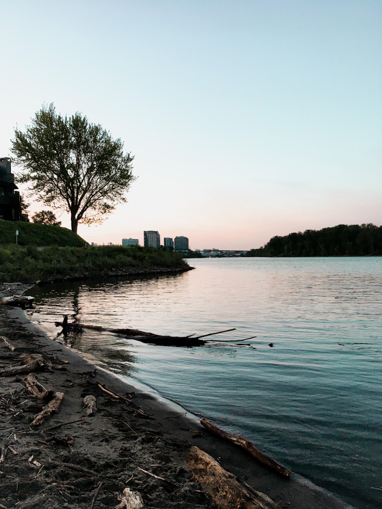 -walk along the waterfront in downtown Portland. Best place to begin is at the corner or Jefferson and 1st and cross Naito Parkway to get to the grass area that goes along the Willamette River