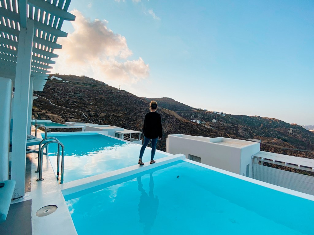 Mykonos is a bit pricy on the hotel side, just like Santorini but for good reason. A lot of pools come with private pools or jacuzzi’s. We wanted to experience an infinity pool, so we chose a hotel that allowed us to have a personal infinity pool and we absolutely loved it! Felt like our modern, luxurious escape from the busy downtown Little Venice. It also allowed us to have a place to swim on the day that there were a ton of jelly fish at the beaches!